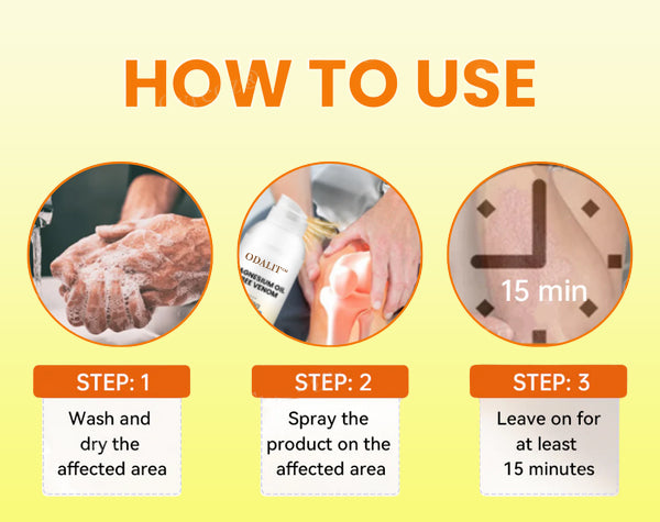 Experience fast relief in just minutes with ODALIT⢠Magnesium Oil & Bee Venom Joint Healing Spray. Designed for quick, even application, this powerful spray absorbs rapidly into the skin, delivering magnesium oil deep into the muscles and joints. Magnesium works to relax tense areas, ease pain from arthritis, cramps, and injuries, and significantly reduce inflammation at the root. Many users report noticeable pain relief within just five minutes of use, making ODALIT⢠a fast-acting solution for both chronic and occasional joint discomfort.