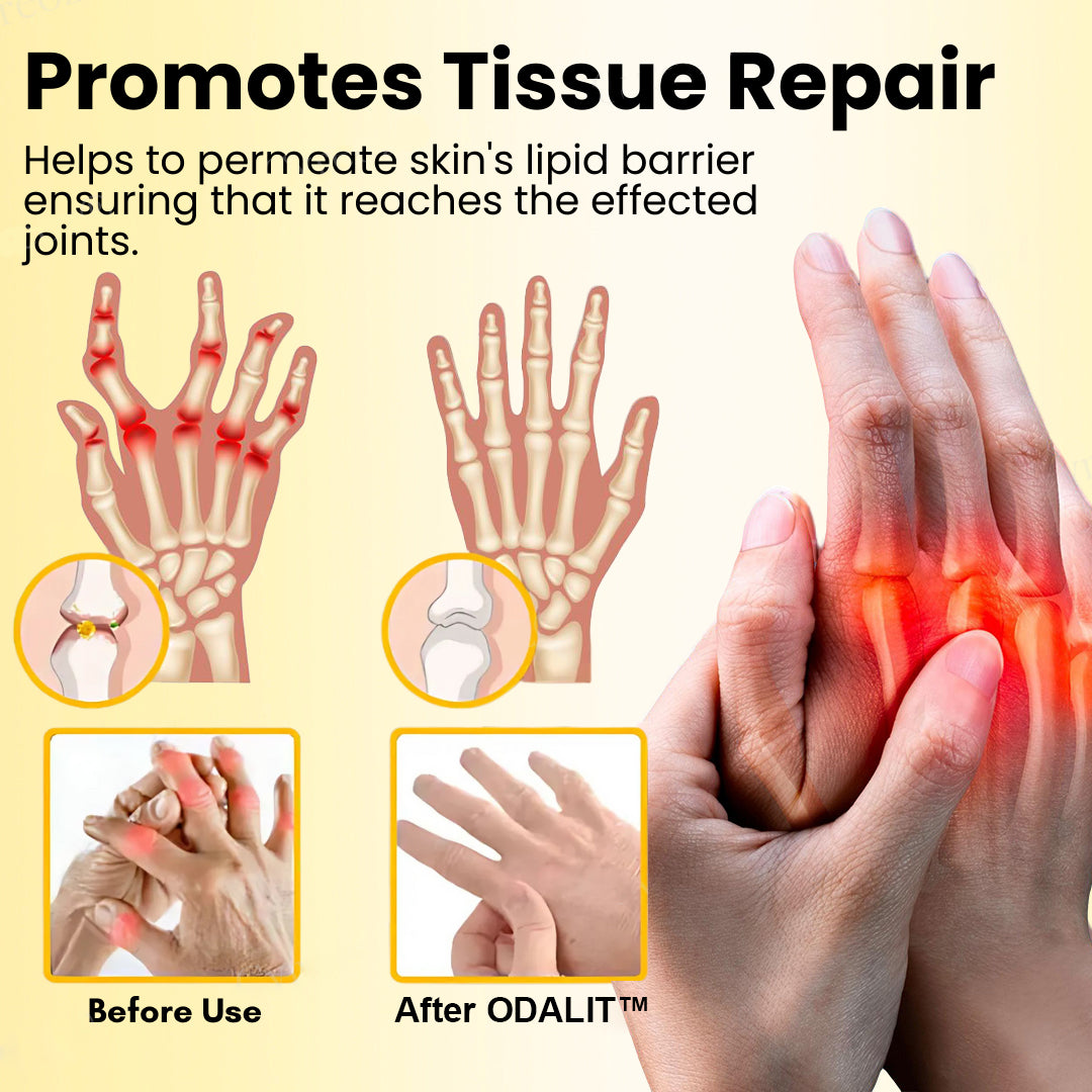 ODALIT⢠combines the potent anti-inflammatory effects of Bee Venom and the deep-penetrating power of Magnesium Oil to target the root cause of joint pain. This fast-absorbing formula reduces swelling, eases stiffness, and supports long-term joint healing to restore mobility and comfort. -